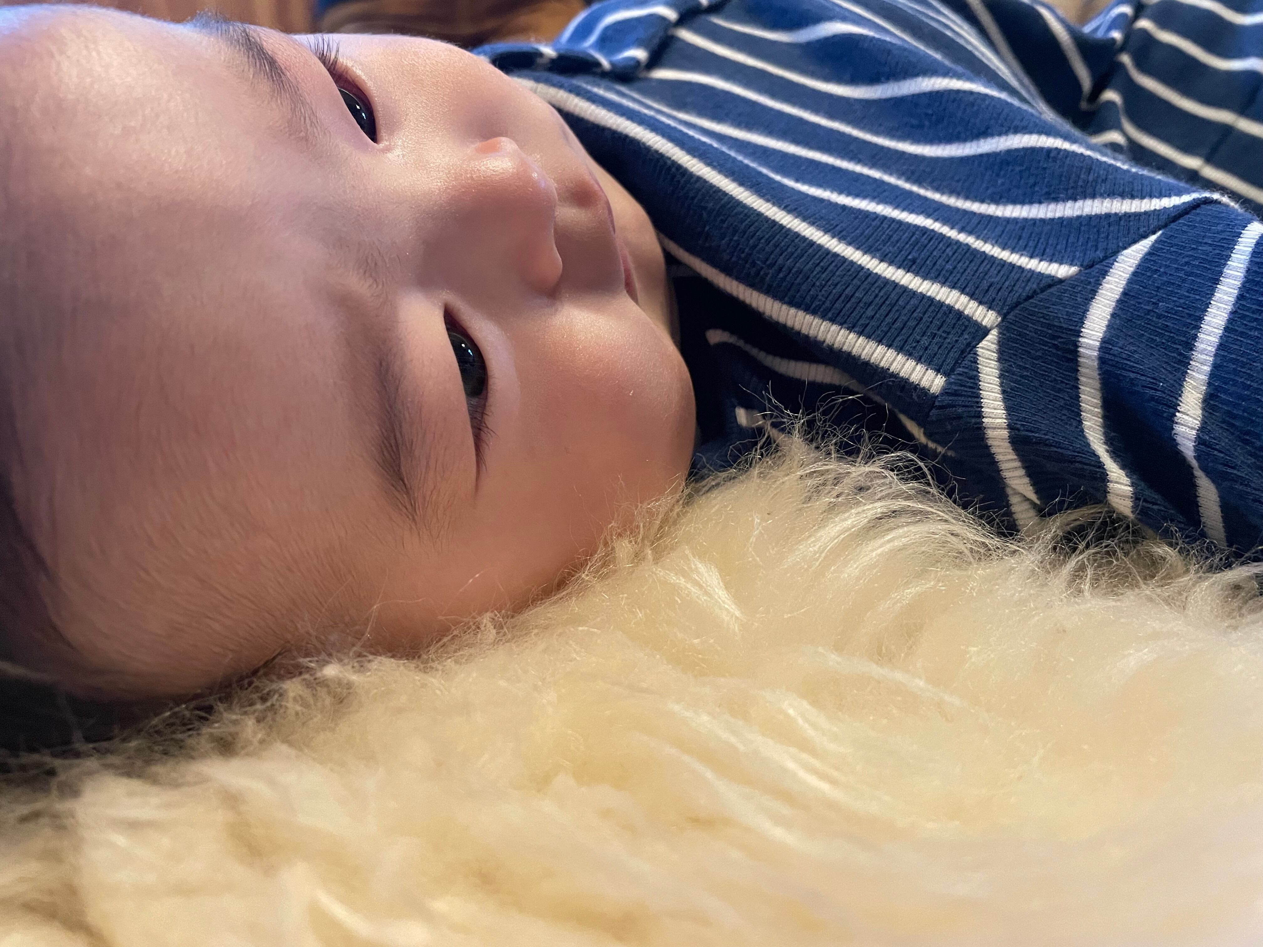 最高級のムートンは、抗菌効果、脱臭効果、保温効果などの高さから"生まれた赤ちゃん誕生への贈り物"としてヨーロッパで喜ばれているそうです。