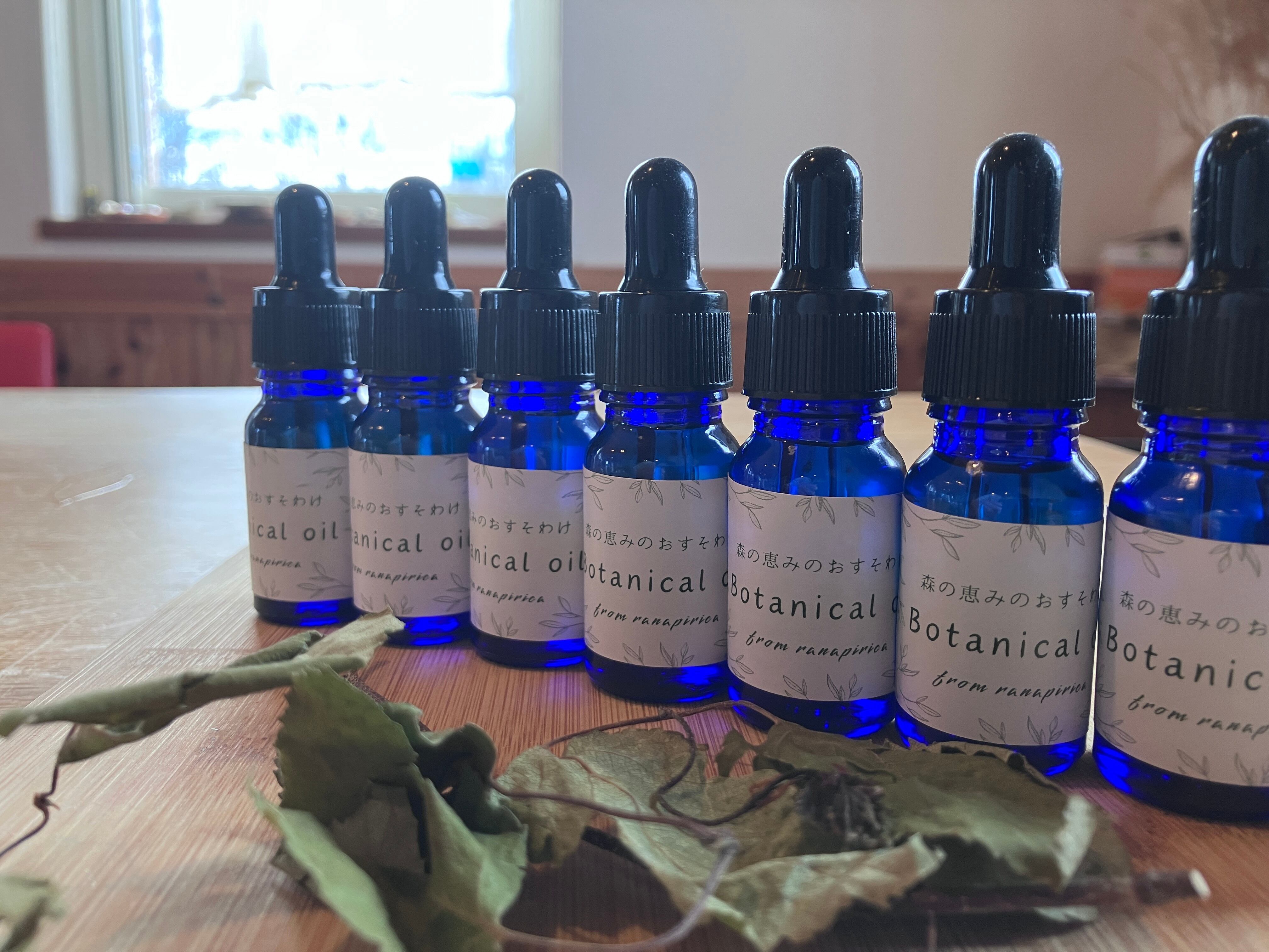 北海道の小さな森で暮らしながら、自然の恵みのお裾分けになるようなオイルを仕込みました。